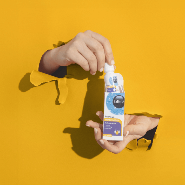 Blink® Intensive Triple Action eye drops contain sodium hyaluronate and liposomes to help supplement and stabilise the tear film, providing relief from dry-feeling or irritated eyes.