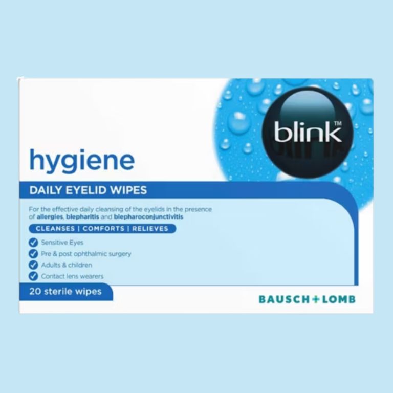 Blink® Hygiene Daily Eyelid Wipes are formulated for gentle daily cleansing of the eyelids and lashes. They help remove debris associated with conditions such as blepharitis, blepharoconjunctivitis, allergies and eye irritation.